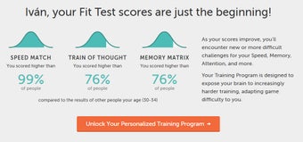 Lo mejor de Lumosity es que mientras pruebas estos minijuegos a lo largo de las semanas, verás como tus puntuaciones mejoran. El entrenamiento además se adapta a tus resultados.